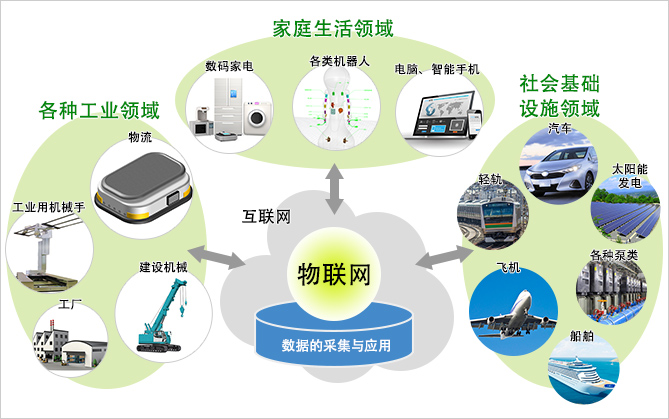 以往,連接至互聯(lián)網(wǎng)的電腦和手寫面板等都是以人輸入的裝置為主流。但是,隨著科技的進步,微處理器和通信模塊的低成本化也有所發(fā)展,迄今為止沒有與互聯(lián)網(wǎng)相連接的“物”也連上了網(wǎng)絡(luò),并通過網(wǎng)絡(luò)互通信息。這種情形下的“物”,例如,工廠內(nèi)的制造設(shè)備、家用電器、汽車和街角的自動售賣機,它們將信息上傳到網(wǎng)絡(luò),無需通過人手,就能以機器對機器(machine to machine)的方式自動報告運轉(zhuǎn)情況,啟動報警功能,或是發(fā)出信號要求補充材料或是下訂單等。