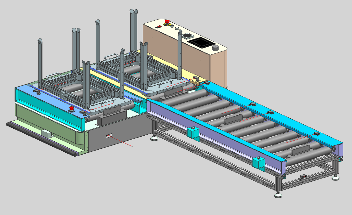 實現產線油缸下線信號的自動收集,配合噴涂區的需求信號,自動完成油缸的搬運,設備充分考慮油缸底部枕木的危險程度,通過機械硬件、及程序的充分考慮,保證每支油缸都能有足夠的安全保障。減少人工的搬運量,提高產線的周轉。